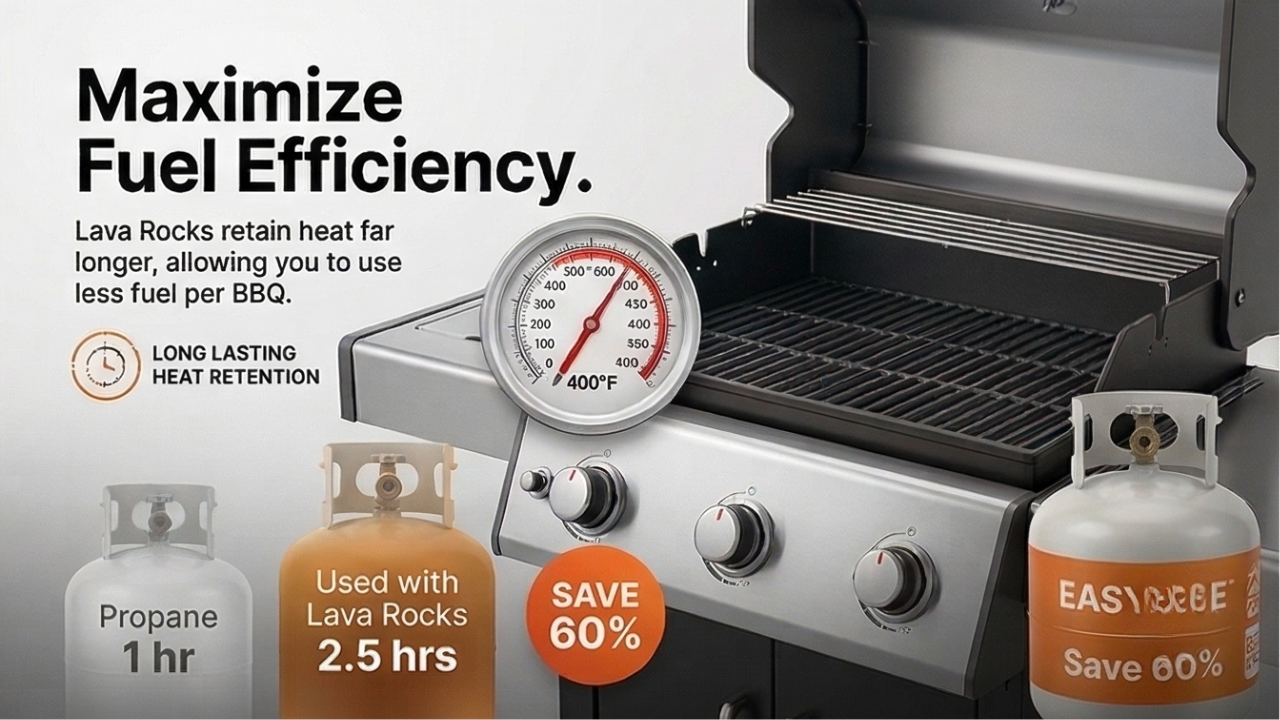By spreading heat more evenly and efficiently, ceramic briquettes reduce the need for constant temperature adjustments while grilling. They help your grill run at optimal performance, allowing you to cook food faster and with less energy.