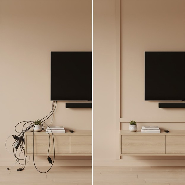 Designing the perfect paint color combinations is only half the job. True design excellence includes cable management for living room spaces.